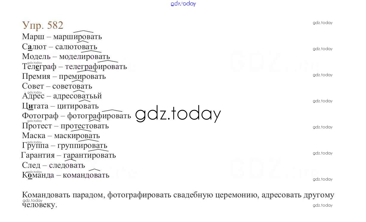 На страницах сайта gdz.today вы найдете учебный и вспомогательный материал, направленный на улучшения знаний школьной программы. ГДЗ - онлайн мир знаний Упражнения Часть 2 582 Учебнику по Русскому языку для 6 класса Баранов, Ладыженская Просвещение, Просвещение 2015, 2022