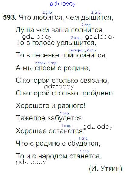На страницах сайта gdz.today вы найдете учебный и вспомогательный материал, направленный на улучшения знаний школьной программы. ГДЗ - онлайн мир знаний Упражнения Часть 2 593 Учебнику по Русскому языку для 6 класса Баранов, Ладыженская Просвещение, Просвещение 2015, 2022