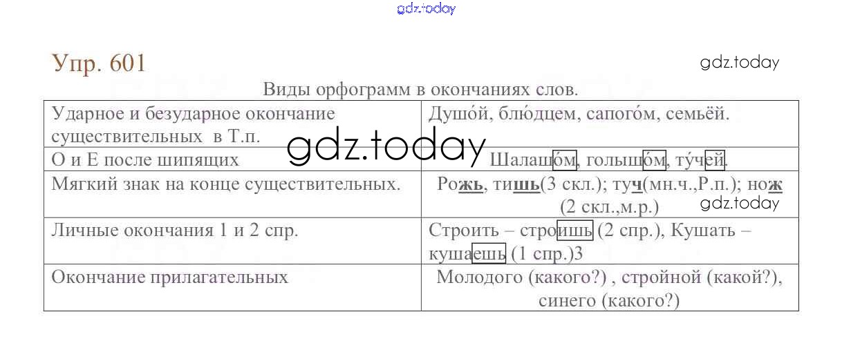 На страницах сайта gdz.today вы найдете учебный и вспомогательный материал, направленный на улучшения знаний школьной программы. ГДЗ - онлайн мир знаний Упражнения Часть 2 601 Учебнику по Русскому языку для 6 класса Баранов, Ладыженская Просвещение, Просвещение 2015, 2022