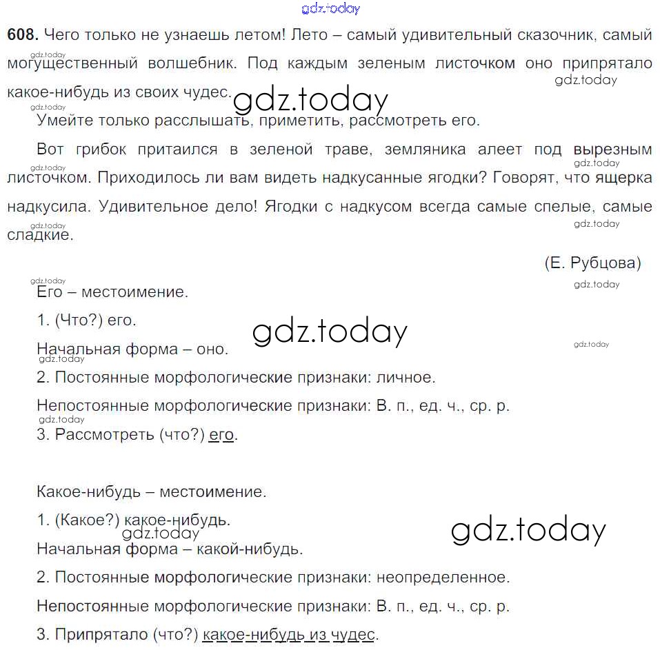 На страницах сайта gdz.today вы найдете учебный и вспомогательный материал, направленный на улучшения знаний школьной программы. ГДЗ - онлайн мир знаний Упражнения Часть 2 608 Учебнику по Русскому языку для 6 класса Баранов, Ладыженская Просвещение, Просвещение 2015, 2022