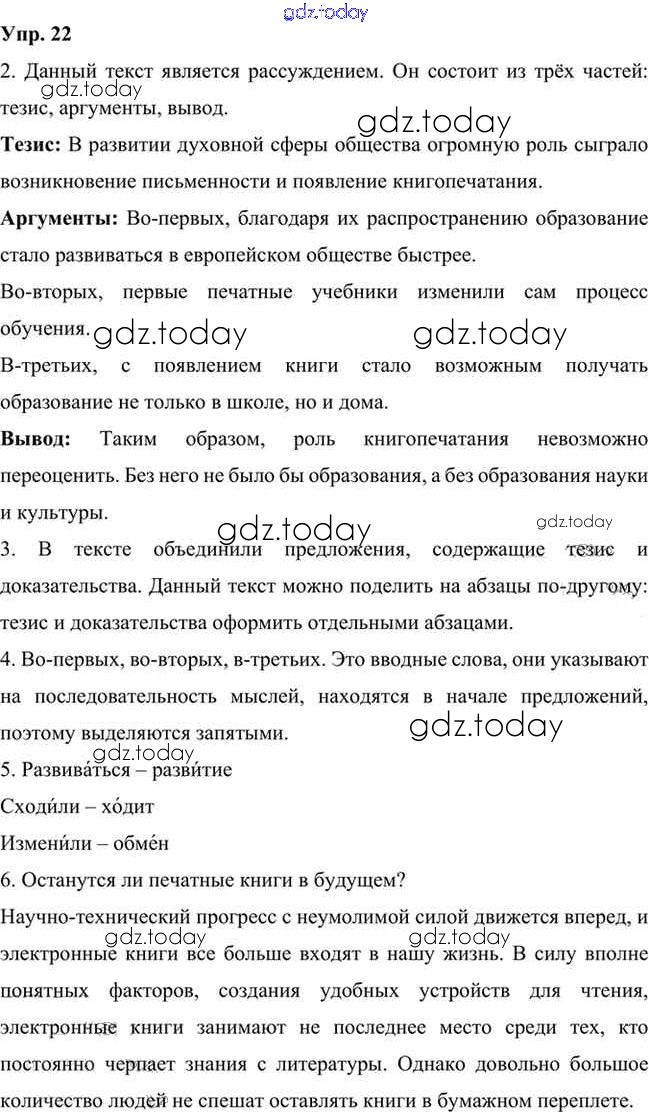 На страницах сайта gdz.today вы найдете учебный и вспомогательный материал, направленный на улучшения знаний школьной программы. ГДЗ - онлайн мир знаний Упражнения Часть 1 (решение) 22 Учебнику по Русскому языку для 6 класса Быстрова, Кибирева Русское слово Инновационная школа 2016