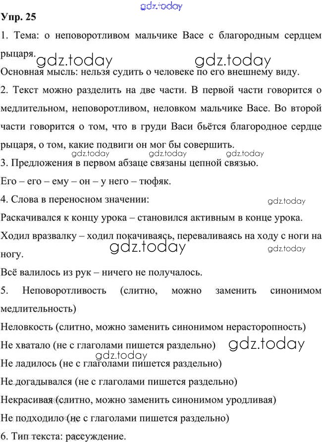 На страницах сайта gdz.today вы найдете учебный и вспомогательный материал, направленный на улучшения знаний школьной программы. ГДЗ - онлайн мир знаний Упражнения Часть 1 (решение) 25 Учебнику по Русскому языку для 6 класса Быстрова, Кибирева Русское слово Инновационная школа 2016