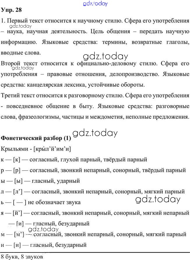 На страницах сайта gdz.today вы найдете учебный и вспомогательный материал, направленный на улучшения знаний школьной программы. ГДЗ - онлайн мир знаний Упражнения Часть 1 (решение) 28 Учебнику по Русскому языку для 6 класса Быстрова, Кибирева Русское слово Инновационная школа 2016