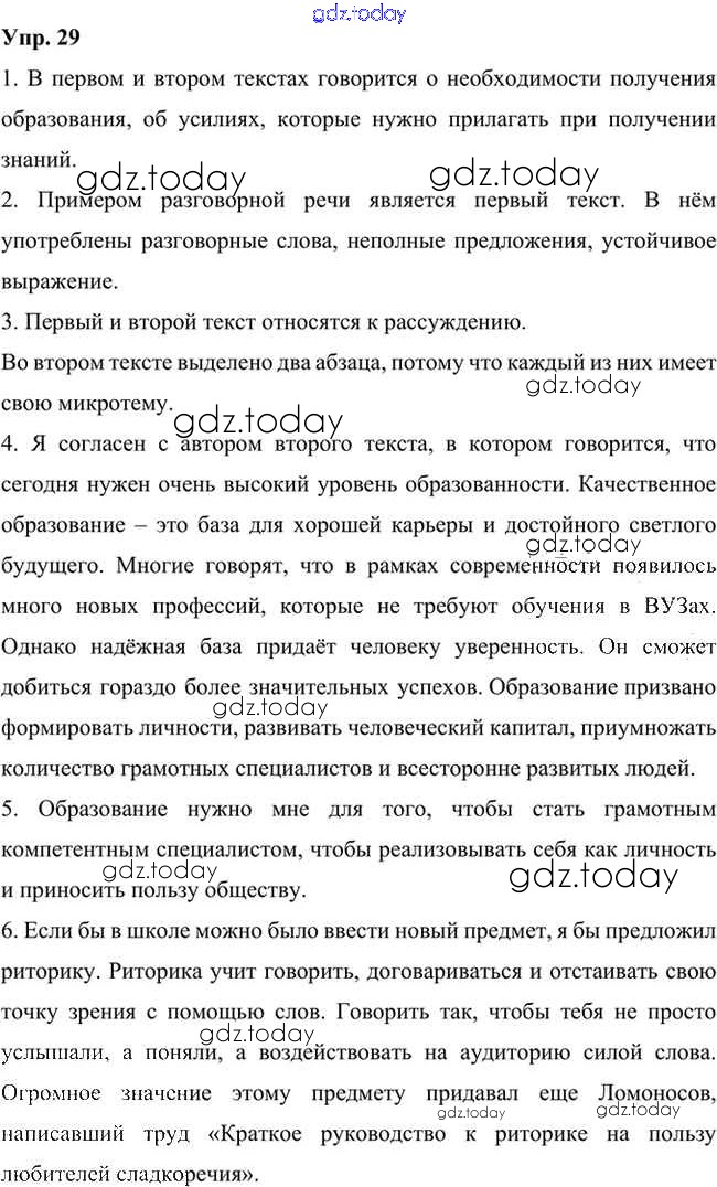 На страницах сайта gdz.today вы найдете учебный и вспомогательный материал, направленный на улучшения знаний школьной программы. ГДЗ - онлайн мир знаний Упражнения Часть 1 (решение) 29 Учебнику по Русскому языку для 6 класса Быстрова, Кибирева Русское слово Инновационная школа 2016