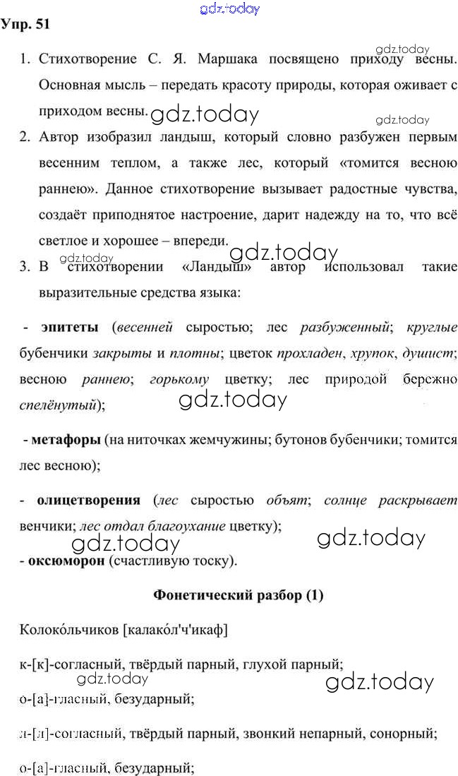 На страницах сайта gdz.today вы найдете учебный и вспомогательный материал, направленный на улучшения знаний школьной программы. ГДЗ - онлайн мир знаний Упражнения Часть 1 (решение) 51 Учебнику по Русскому языку для 6 класса Быстрова, Кибирева Русское слово Инновационная школа 2016
