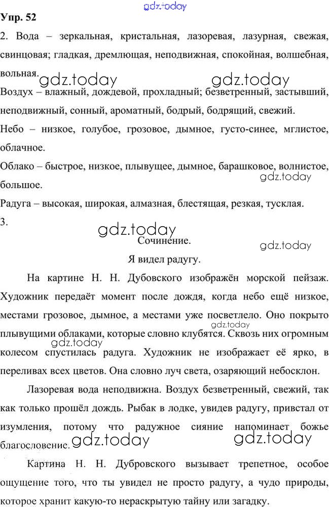 На страницах сайта gdz.today вы найдете учебный и вспомогательный материал, направленный на улучшения знаний школьной программы. ГДЗ - онлайн мир знаний Упражнения Часть 1 (решение) 52 Учебнику по Русскому языку для 6 класса Быстрова, Кибирева Русское слово Инновационная школа 2016