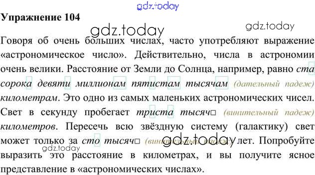 На страницах сайта gdz.today вы найдете учебный и вспомогательный материал, направленный на улучшения знаний школьной программы. ГДЗ - онлайн мир знаний Упражнения Часть 2 (решение) 104 Учебнику по Русскому языку для 6 класса Быстрова, Кибирева Русское слово Инновационная школа 2016