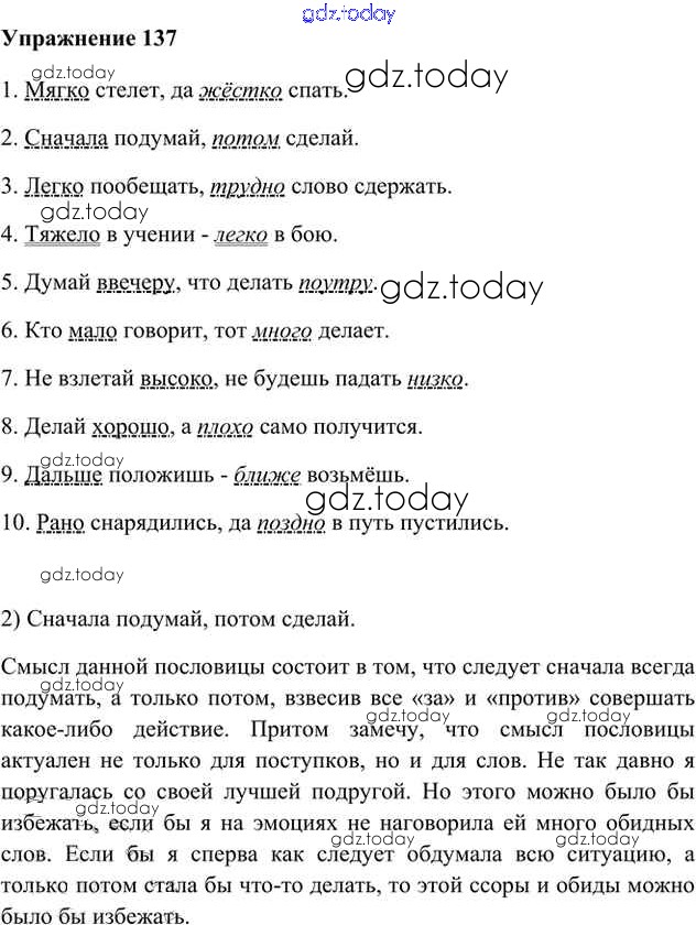 На страницах сайта gdz.today вы найдете учебный и вспомогательный материал, направленный на улучшения знаний школьной программы. ГДЗ - онлайн мир знаний Упражнения Часть 2 (решение) 137 Учебнику по Русскому языку для 6 класса Быстрова, Кибирева Русское слово Инновационная школа 2016