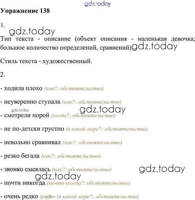 На страницах сайта gdz.today вы найдете учебный и вспомогательный материал, направленный на улучшения знаний школьной программы. ГДЗ - онлайн мир знаний Упражнения Часть 2 (решение) 138 Учебнику по Русскому языку для 6 класса Быстрова, Кибирева Русское слово Инновационная школа 2016