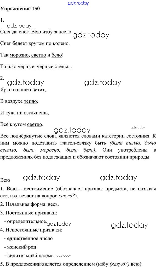 На страницах сайта gdz.today вы найдете учебный и вспомогательный материал, направленный на улучшения знаний школьной программы. ГДЗ - онлайн мир знаний Упражнения Часть 2 (решение) 150 Учебнику по Русскому языку для 6 класса Быстрова, Кибирева Русское слово Инновационная школа 2016