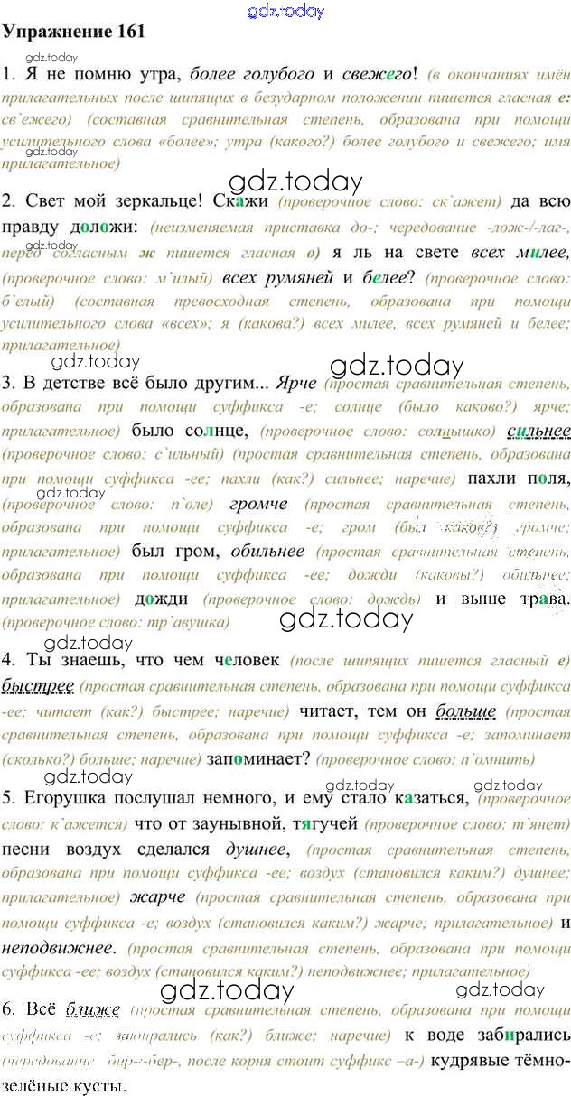 На страницах сайта gdz.today вы найдете учебный и вспомогательный материал, направленный на улучшения знаний школьной программы. ГДЗ - онлайн мир знаний Упражнения Часть 2 (решение) 161 Учебнику по Русскому языку для 6 класса Быстрова, Кибирева Русское слово Инновационная школа 2016
