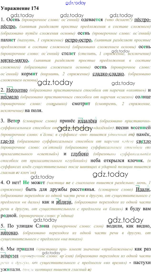 На страницах сайта gdz.today вы найдете учебный и вспомогательный материал, направленный на улучшения знаний школьной программы. ГДЗ - онлайн мир знаний Упражнения Часть 2 (решение) 174 Учебнику по Русскому языку для 6 класса Быстрова, Кибирева Русское слово Инновационная школа 2016