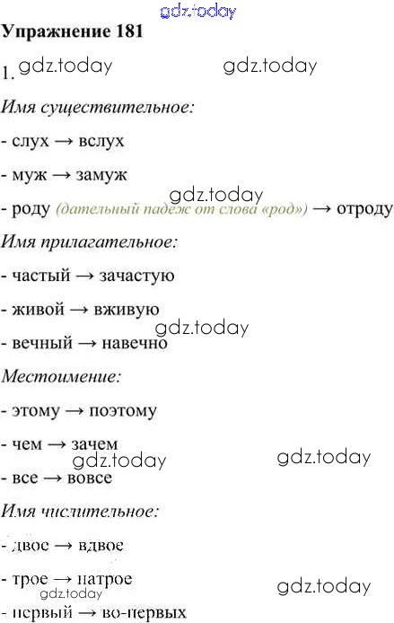 На страницах сайта gdz.today вы найдете учебный и вспомогательный материал, направленный на улучшения знаний школьной программы. ГДЗ - онлайн мир знаний Упражнения Часть 2 (решение) 181 Учебнику по Русскому языку для 6 класса Быстрова, Кибирева Русское слово Инновационная школа 2016