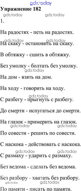 На страницах сайта gdz.today вы найдете учебный и вспомогательный материал, направленный на улучшения знаний школьной программы. ГДЗ - онлайн мир знаний Упражнения Часть 2 (решение) 182 Учебнику по Русскому языку для 6 класса Быстрова, Кибирева Русское слово Инновационная школа 2016