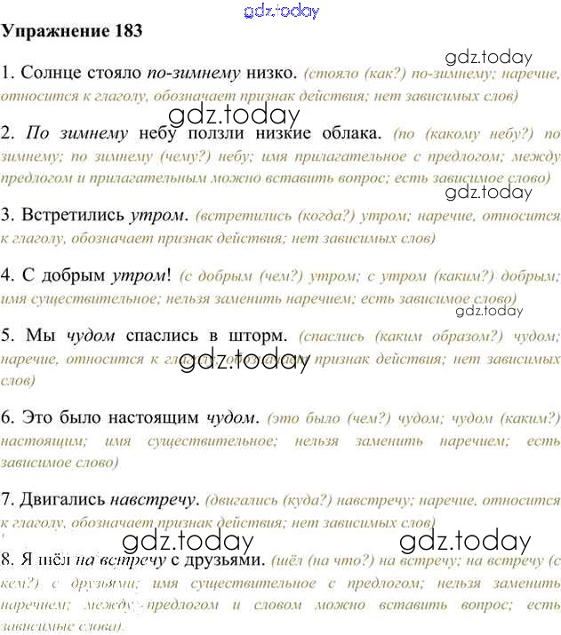 На страницах сайта gdz.today вы найдете учебный и вспомогательный материал, направленный на улучшения знаний школьной программы. ГДЗ - онлайн мир знаний Упражнения Часть 2 (решение) 183 Учебнику по Русскому языку для 6 класса Быстрова, Кибирева Русское слово Инновационная школа 2016