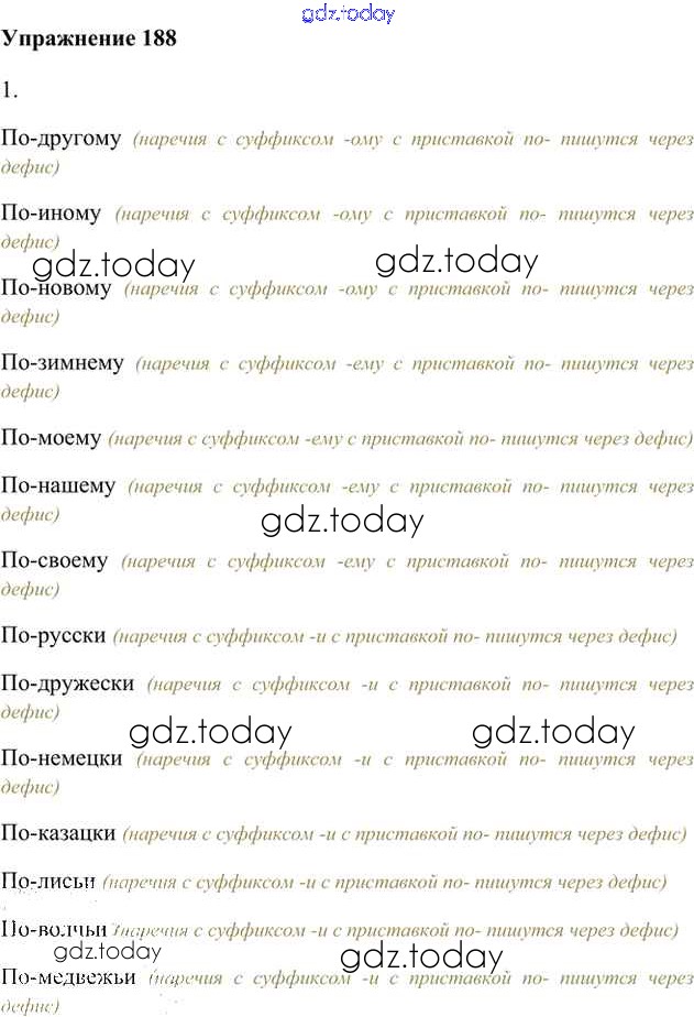 На страницах сайта gdz.today вы найдете учебный и вспомогательный материал, направленный на улучшения знаний школьной программы. ГДЗ - онлайн мир знаний Упражнения Часть 2 (решение) 188 Учебнику по Русскому языку для 6 класса Быстрова, Кибирева Русское слово Инновационная школа 2016