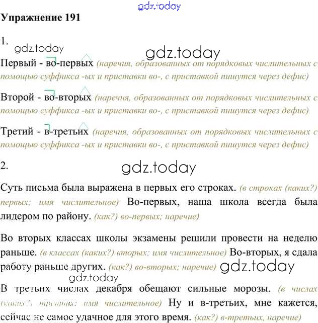На страницах сайта gdz.today вы найдете учебный и вспомогательный материал, направленный на улучшения знаний школьной программы. ГДЗ - онлайн мир знаний Упражнения Часть 2 (решение) 191 Учебнику по Русскому языку для 6 класса Быстрова, Кибирева Русское слово Инновационная школа 2016