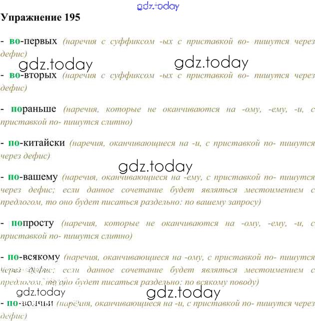 На страницах сайта gdz.today вы найдете учебный и вспомогательный материал, направленный на улучшения знаний школьной программы. ГДЗ - онлайн мир знаний Упражнения Часть 2 (решение) 195 Учебнику по Русскому языку для 6 класса Быстрова, Кибирева Русское слово Инновационная школа 2016