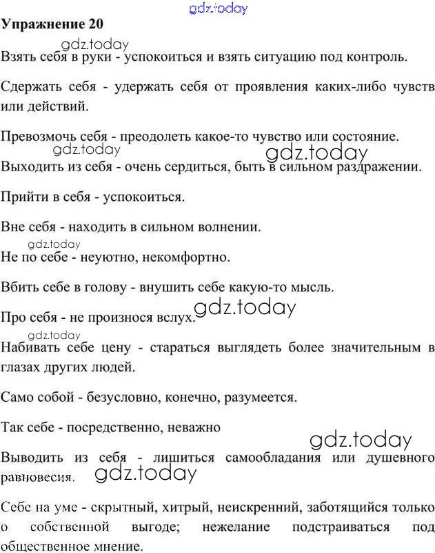 На страницах сайта gdz.today вы найдете учебный и вспомогательный материал, направленный на улучшения знаний школьной программы. ГДЗ - онлайн мир знаний Упражнения Часть 2 (решение) 20 Учебнику по Русскому языку для 6 класса Быстрова, Кибирева Русское слово Инновационная школа 2016