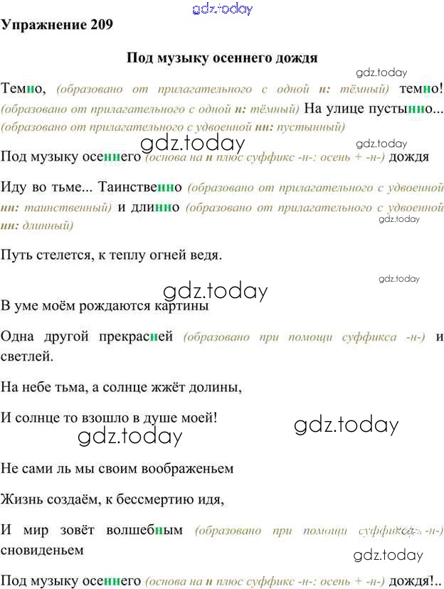 На страницах сайта gdz.today вы найдете учебный и вспомогательный материал, направленный на улучшения знаний школьной программы. ГДЗ - онлайн мир знаний Упражнения Часть 2 (решение) 209 Учебнику по Русскому языку для 6 класса Быстрова, Кибирева Русское слово Инновационная школа 2016