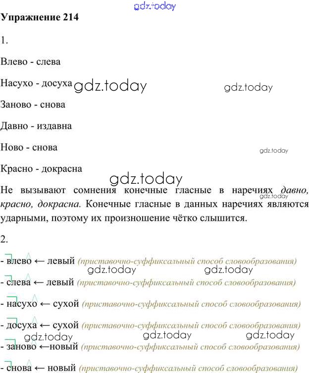 На страницах сайта gdz.today вы найдете учебный и вспомогательный материал, направленный на улучшения знаний школьной программы. ГДЗ - онлайн мир знаний Упражнения Часть 2 (решение) 214 Учебнику по Русскому языку для 6 класса Быстрова, Кибирева Русское слово Инновационная школа 2016