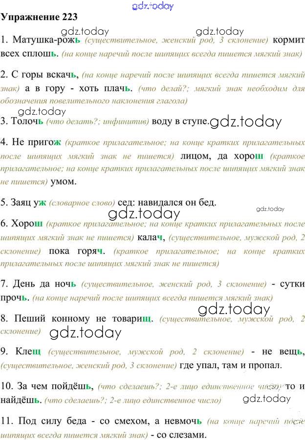 На страницах сайта gdz.today вы найдете учебный и вспомогательный материал, направленный на улучшения знаний школьной программы. ГДЗ - онлайн мир знаний Упражнения Часть 2 (решение) 223 Учебнику по Русскому языку для 6 класса Быстрова, Кибирева Русское слово Инновационная школа 2016
