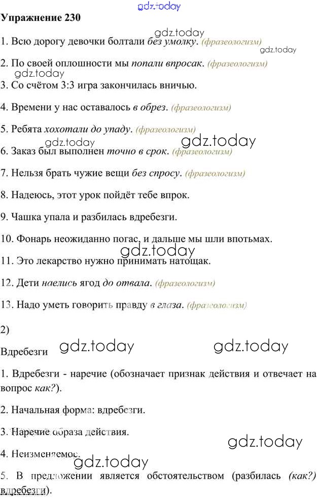 На страницах сайта gdz.today вы найдете учебный и вспомогательный материал, направленный на улучшения знаний школьной программы. ГДЗ - онлайн мир знаний Упражнения Часть 2 (решение) 230 Учебнику по Русскому языку для 6 класса Быстрова, Кибирева Русское слово Инновационная школа 2016