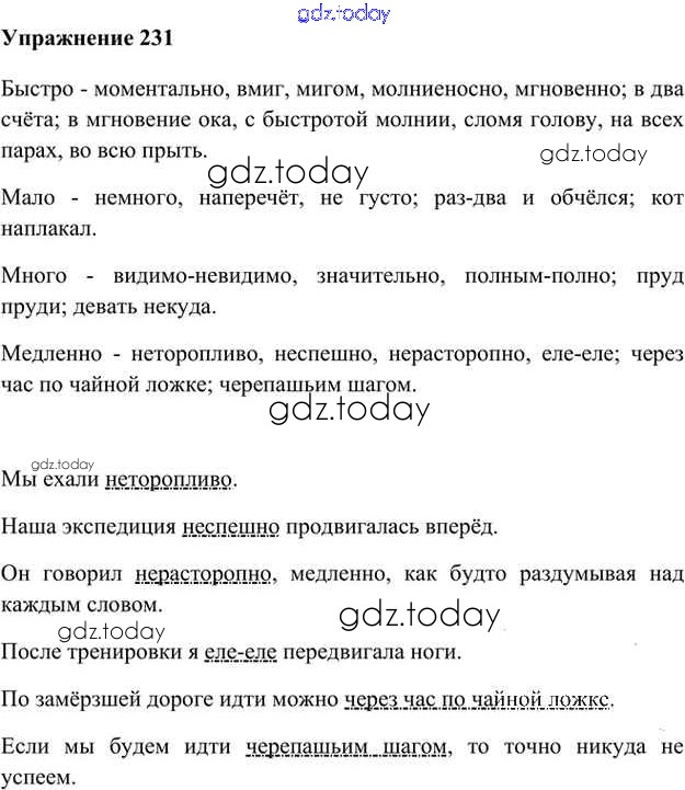 На страницах сайта gdz.today вы найдете учебный и вспомогательный материал, направленный на улучшения знаний школьной программы. ГДЗ - онлайн мир знаний Упражнения Часть 2 (решение) 231 Учебнику по Русскому языку для 6 класса Быстрова, Кибирева Русское слово Инновационная школа 2016