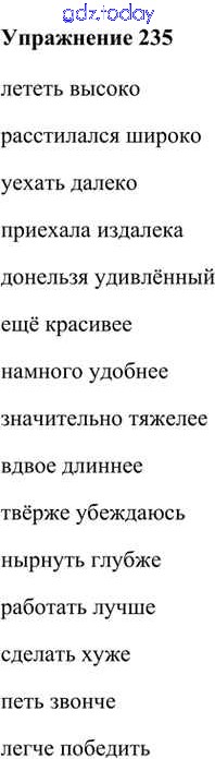 На страницах сайта gdz.today вы найдете учебный и вспомогательный материал, направленный на улучшения знаний школьной программы. ГДЗ - онлайн мир знаний Упражнения Часть 2 (решение) 235 Учебнику по Русскому языку для 6 класса Быстрова, Кибирева Русское слово Инновационная школа 2016