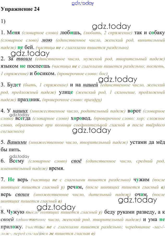 На страницах сайта gdz.today вы найдете учебный и вспомогательный материал, направленный на улучшения знаний школьной программы. ГДЗ - онлайн мир знаний Упражнения Часть 2 (решение) 24 Учебнику по Русскому языку для 6 класса Быстрова, Кибирева Русское слово Инновационная школа 2016