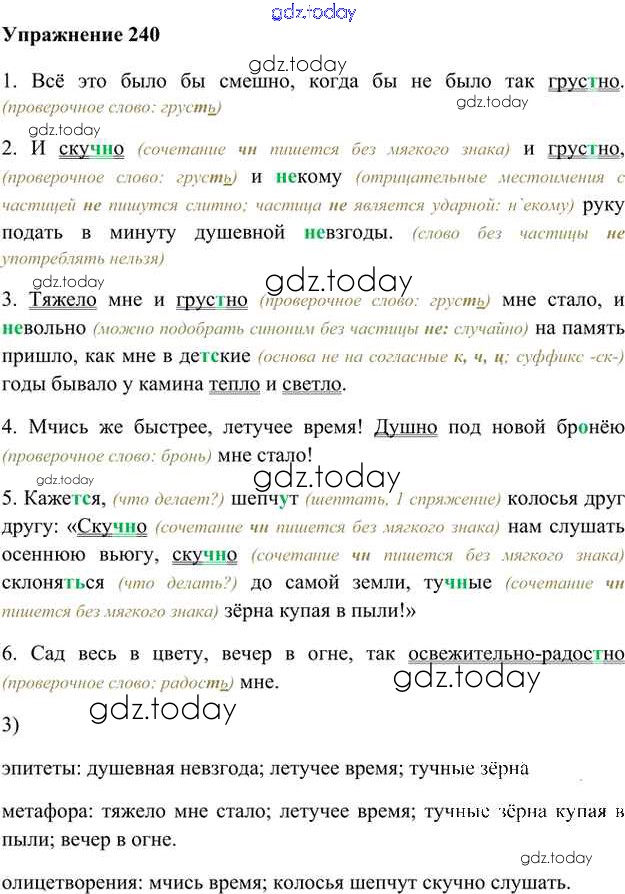 На страницах сайта gdz.today вы найдете учебный и вспомогательный материал, направленный на улучшения знаний школьной программы. ГДЗ - онлайн мир знаний Упражнения Часть 2 (решение) 240 Учебнику по Русскому языку для 6 класса Быстрова, Кибирева Русское слово Инновационная школа 2016