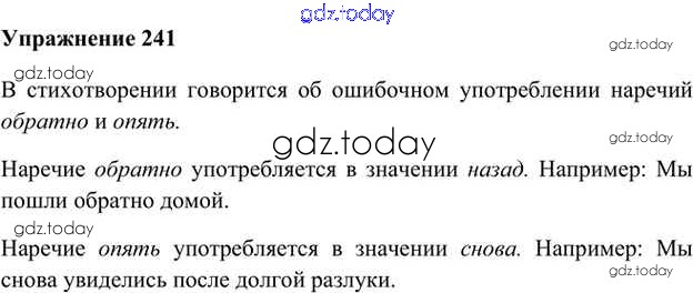На страницах сайта gdz.today вы найдете учебный и вспомогательный материал, направленный на улучшения знаний школьной программы. ГДЗ - онлайн мир знаний Упражнения Часть 2 (решение) 241 Учебнику по Русскому языку для 6 класса Быстрова, Кибирева Русское слово Инновационная школа 2016