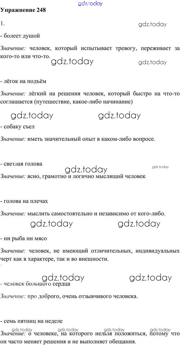 На страницах сайта gdz.today вы найдете учебный и вспомогательный материал, направленный на улучшения знаний школьной программы. ГДЗ - онлайн мир знаний Упражнения Часть 2 (решение) 248 Учебнику по Русскому языку для 6 класса Быстрова, Кибирева Русское слово Инновационная школа 2016