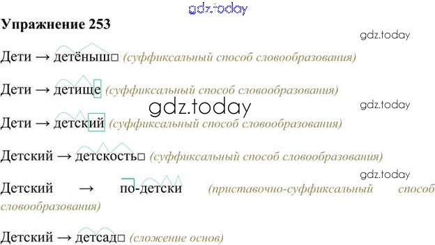 На страницах сайта gdz.today вы найдете учебный и вспомогательный материал, направленный на улучшения знаний школьной программы. ГДЗ - онлайн мир знаний Упражнения Часть 2 (решение) 253 Учебнику по Русскому языку для 6 класса Быстрова, Кибирева Русское слово Инновационная школа 2016