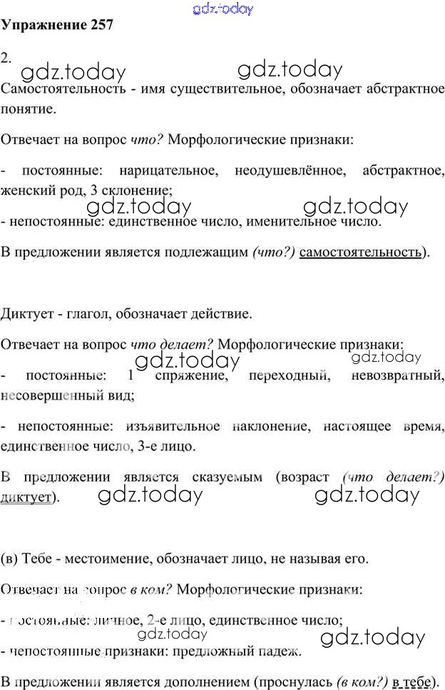 На страницах сайта gdz.today вы найдете учебный и вспомогательный материал, направленный на улучшения знаний школьной программы. ГДЗ - онлайн мир знаний Упражнения Часть 2 (решение) 257 Учебнику по Русскому языку для 6 класса Быстрова, Кибирева Русское слово Инновационная школа 2016