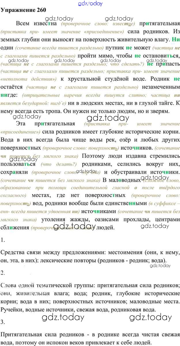 На страницах сайта gdz.today вы найдете учебный и вспомогательный материал, направленный на улучшения знаний школьной программы. ГДЗ - онлайн мир знаний Упражнения Часть 2 (решение) 260 Учебнику по Русскому языку для 6 класса Быстрова, Кибирева Русское слово Инновационная школа 2016