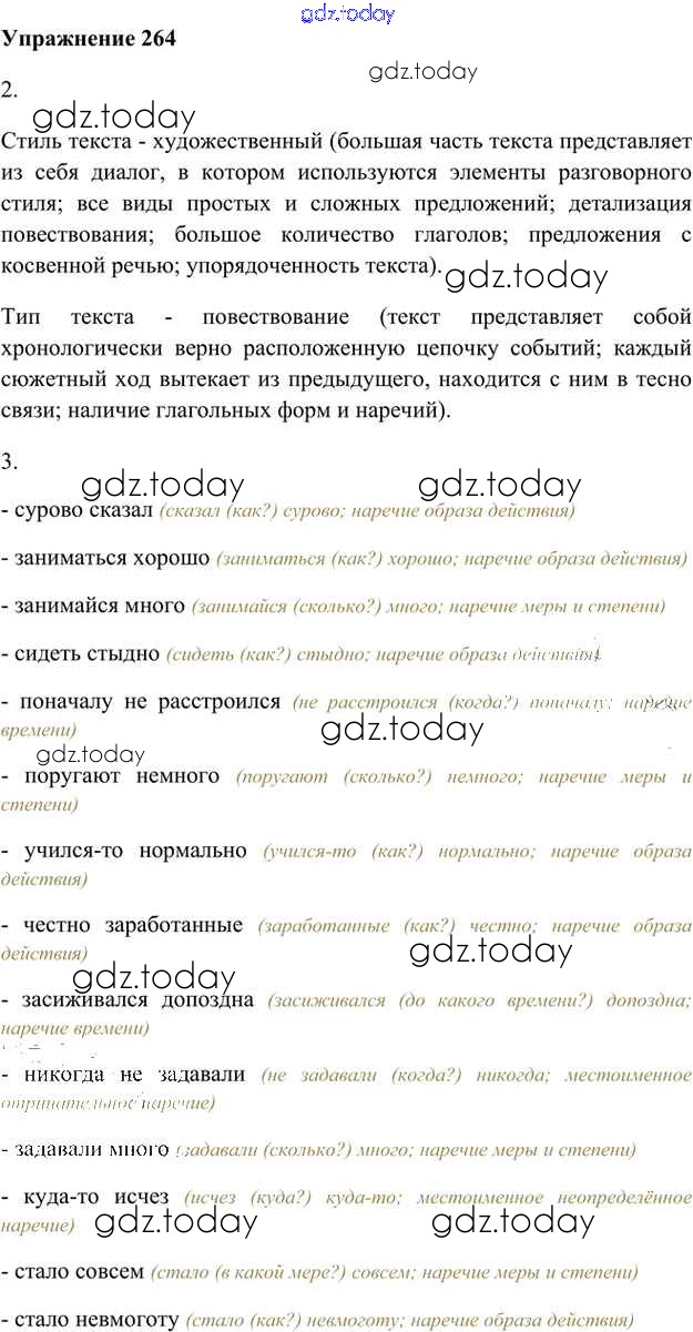 На страницах сайта gdz.today вы найдете учебный и вспомогательный материал, направленный на улучшения знаний школьной программы. ГДЗ - онлайн мир знаний Упражнения Часть 2 (решение) 264 Учебнику по Русскому языку для 6 класса Быстрова, Кибирева Русское слово Инновационная школа 2016
