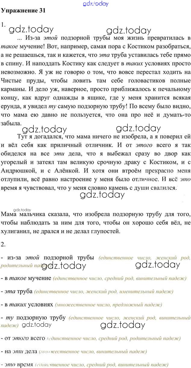 На страницах сайта gdz.today вы найдете учебный и вспомогательный материал, направленный на улучшения знаний школьной программы. ГДЗ - онлайн мир знаний Упражнения Часть 2 (решение) 31 Учебнику по Русскому языку для 6 класса Быстрова, Кибирева Русское слово Инновационная школа 2016