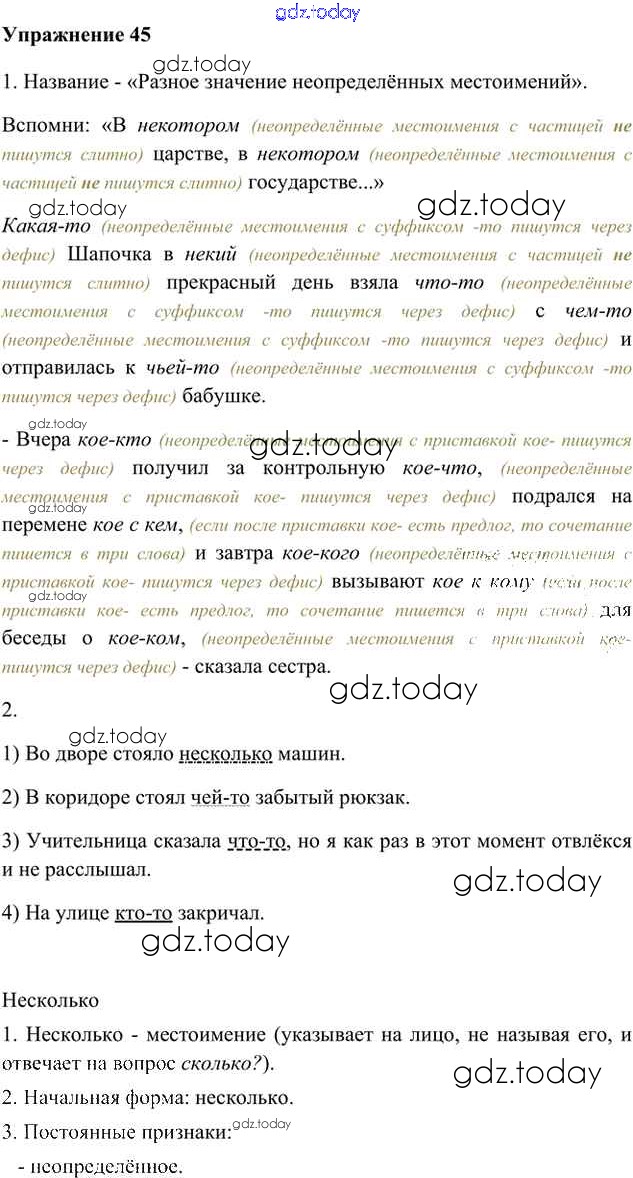 На страницах сайта gdz.today вы найдете учебный и вспомогательный материал, направленный на улучшения знаний школьной программы. ГДЗ - онлайн мир знаний Упражнения Часть 2 (решение) 45 Учебнику по Русскому языку для 6 класса Быстрова, Кибирева Русское слово Инновационная школа 2016
