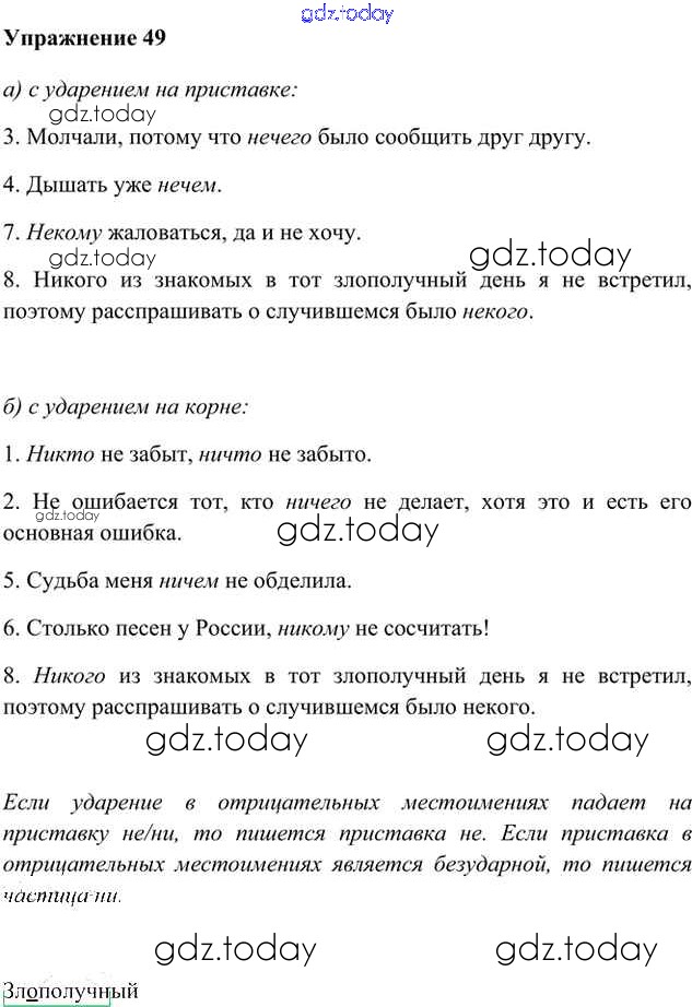 На страницах сайта gdz.today вы найдете учебный и вспомогательный материал, направленный на улучшения знаний школьной программы. ГДЗ - онлайн мир знаний Упражнения Часть 2 (решение) 49 Учебнику по Русскому языку для 6 класса Быстрова, Кибирева Русское слово Инновационная школа 2016