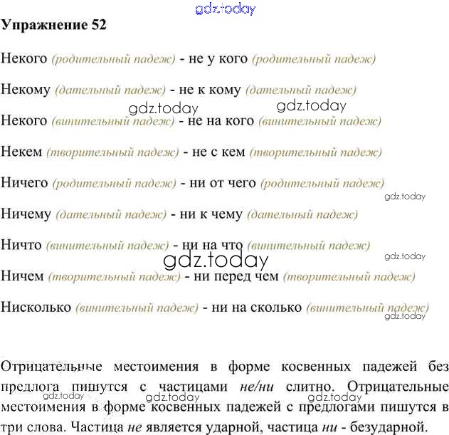 На страницах сайта gdz.today вы найдете учебный и вспомогательный материал, направленный на улучшения знаний школьной программы. ГДЗ - онлайн мир знаний Упражнения Часть 2 (решение) 52 Учебнику по Русскому языку для 6 класса Быстрова, Кибирева Русское слово Инновационная школа 2016