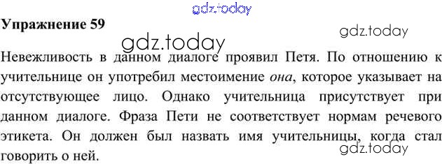 На страницах сайта gdz.today вы найдете учебный и вспомогательный материал, направленный на улучшения знаний школьной программы. ГДЗ - онлайн мир знаний Упражнения Часть 2 (решение) 59 Учебнику по Русскому языку для 6 класса Быстрова, Кибирева Русское слово Инновационная школа 2016