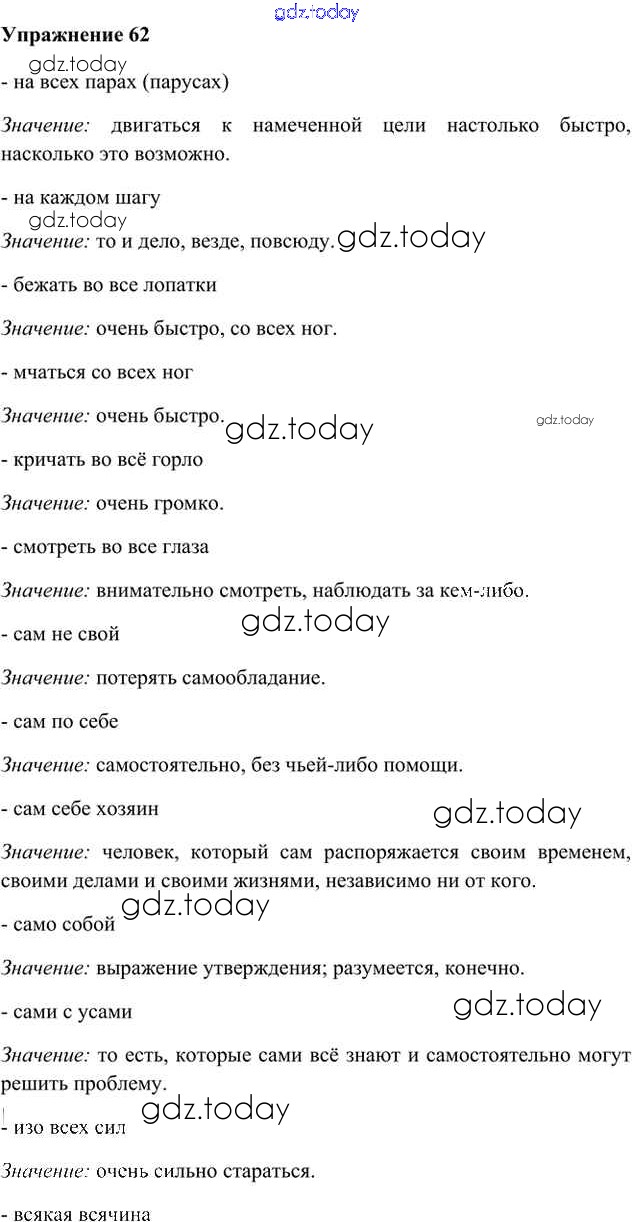 На страницах сайта gdz.today вы найдете учебный и вспомогательный материал, направленный на улучшения знаний школьной программы. ГДЗ - онлайн мир знаний Упражнения Часть 2 (решение) 62 Учебнику по Русскому языку для 6 класса Быстрова, Кибирева Русское слово Инновационная школа 2016