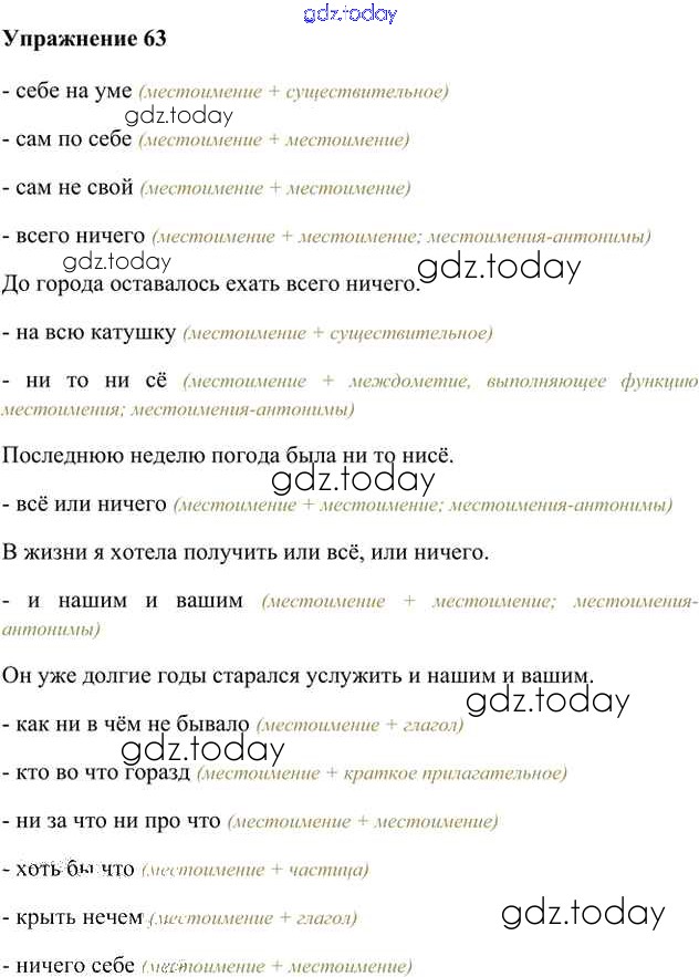 На страницах сайта gdz.today вы найдете учебный и вспомогательный материал, направленный на улучшения знаний школьной программы. ГДЗ - онлайн мир знаний Упражнения Часть 2 (решение) 63 Учебнику по Русскому языку для 6 класса Быстрова, Кибирева Русское слово Инновационная школа 2016