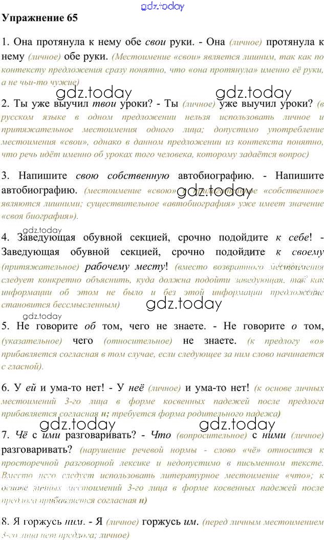 На страницах сайта gdz.today вы найдете учебный и вспомогательный материал, направленный на улучшения знаний школьной программы. ГДЗ - онлайн мир знаний Упражнения Часть 2 (решение) 65 Учебнику по Русскому языку для 6 класса Быстрова, Кибирева Русское слово Инновационная школа 2016