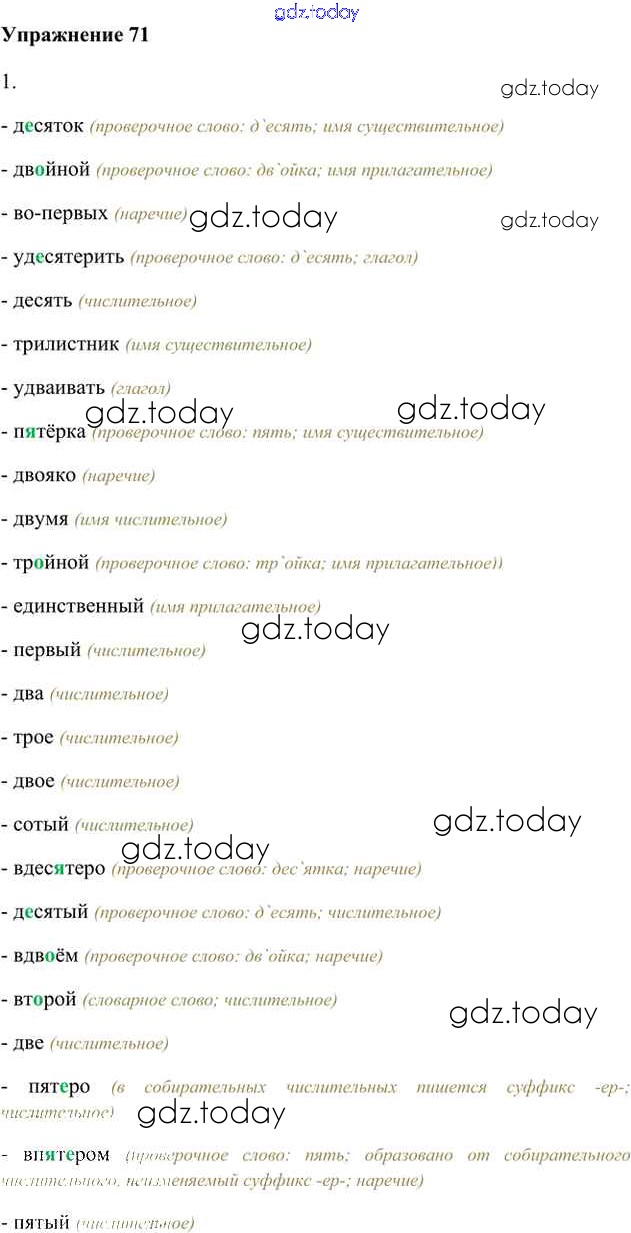 На страницах сайта gdz.today вы найдете учебный и вспомогательный материал, направленный на улучшения знаний школьной программы. ГДЗ - онлайн мир знаний Упражнения Часть 2 (решение) 71 Учебнику по Русскому языку для 6 класса Быстрова, Кибирева Русское слово Инновационная школа 2016
