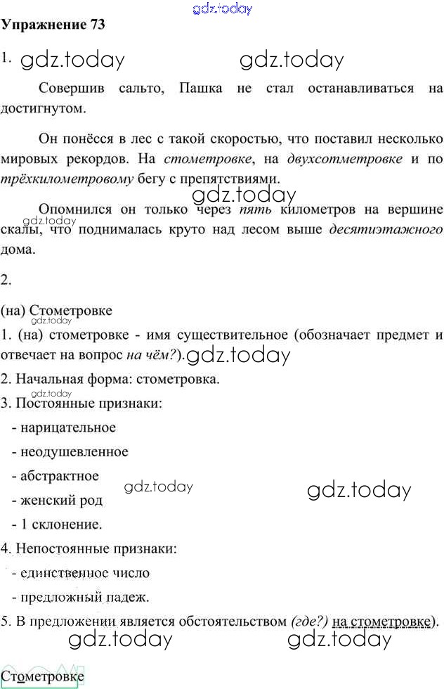 На страницах сайта gdz.today вы найдете учебный и вспомогательный материал, направленный на улучшения знаний школьной программы. ГДЗ - онлайн мир знаний Упражнения Часть 2 (решение) 73 Учебнику по Русскому языку для 6 класса Быстрова, Кибирева Русское слово Инновационная школа 2016