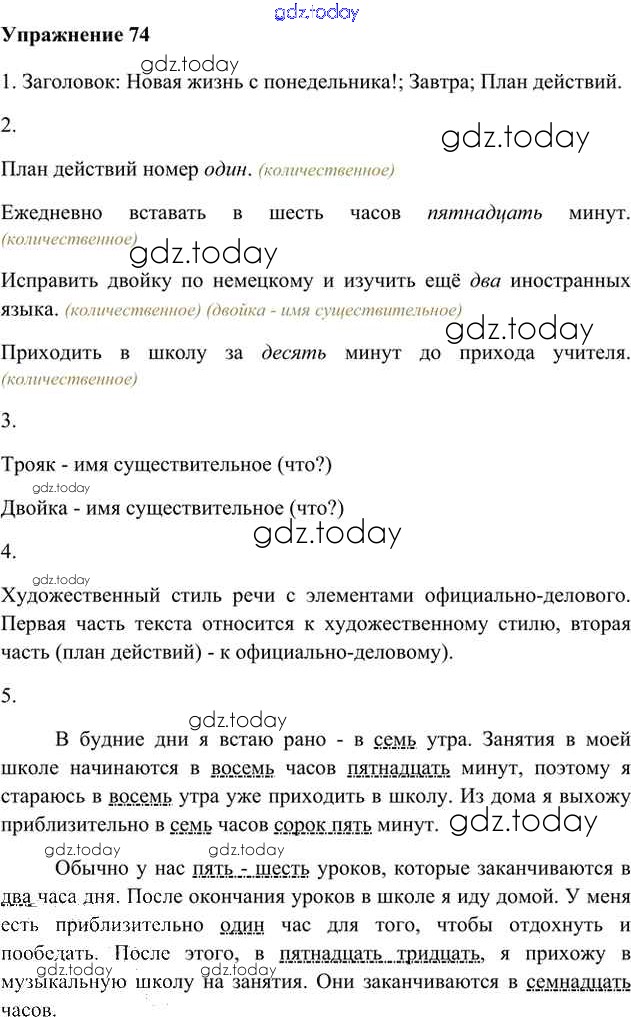 На страницах сайта gdz.today вы найдете учебный и вспомогательный материал, направленный на улучшения знаний школьной программы. ГДЗ - онлайн мир знаний Упражнения Часть 2 (решение) 74 Учебнику по Русскому языку для 6 класса Быстрова, Кибирева Русское слово Инновационная школа 2016