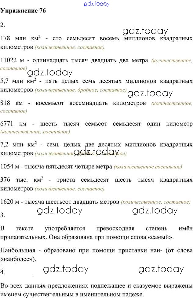 На страницах сайта gdz.today вы найдете учебный и вспомогательный материал, направленный на улучшения знаний школьной программы. ГДЗ - онлайн мир знаний Упражнения Часть 2 (решение) 76 Учебнику по Русскому языку для 6 класса Быстрова, Кибирева Русское слово Инновационная школа 2016