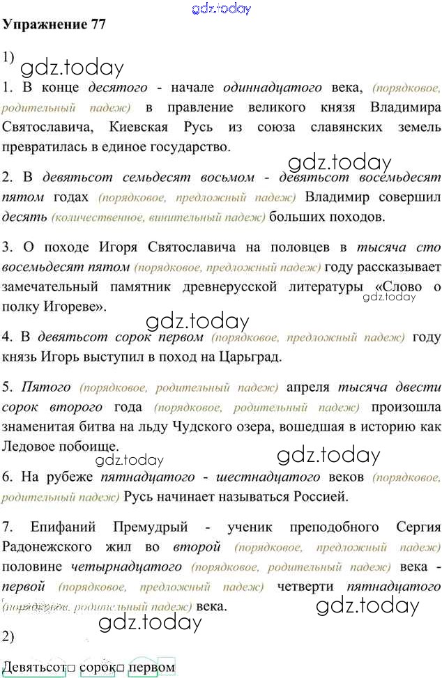 На страницах сайта gdz.today вы найдете учебный и вспомогательный материал, направленный на улучшения знаний школьной программы. ГДЗ - онлайн мир знаний Упражнения Часть 2 (решение) 77 Учебнику по Русскому языку для 6 класса Быстрова, Кибирева Русское слово Инновационная школа 2016